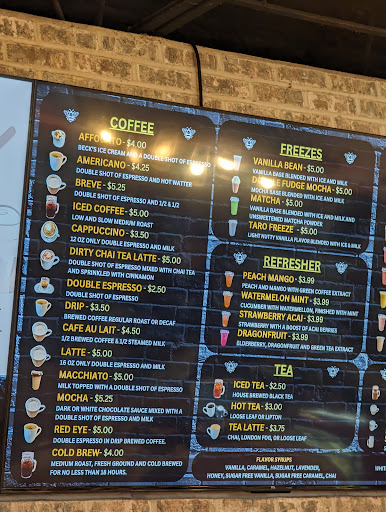 Blended frozen beverage (available flavors: vanilla bean, latte, double fudge mocha, toasted coconut) Add a double shot of espresso for $ extra, whipped cream for . cents extra)